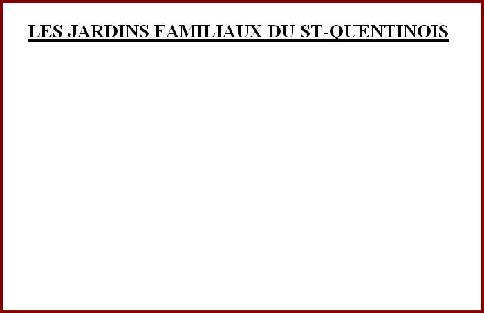 Cette association a pour but de créer et d' organiser des jardins familiaux en faveur de ses adhérents en réservant,en principe, la priorité aux familles