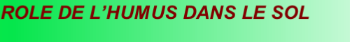 L’humus ou terreau est la matière noire qui provient de la décomposition du fumier. On ne sait pas grand-chose sur sa composition exacte ; il prend naissance toutes les fois que des matières organiques se décomposent en présence d’une quantité d’air limitée. C’est l’humus qui donne à la terre végétale sa couleur brune plus ou moins foncée. Il joue un rôle de première importance dans l’ameublissement des sols ; l’humus, en effet, donne du corps aux terres légères et diminue la compacité des terres argileuses. Sans lui, il serait presque impossible de cultiver nos terres ; les terres légères se transformeraient en poussière par la sécheresse, les terres fortes formeraient des blocs imperméables. D’autre part, pendant les pluies, l’humus absorbe une quantité d’eau considérable qu’il ne laisse évaporer que lentement quand survient la sécheresse. Il a donc comme effet de maintenir la fraîcheur du sol.