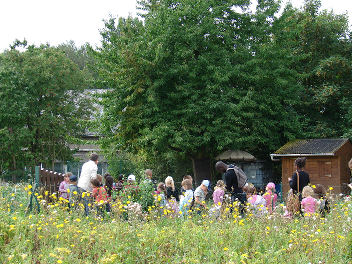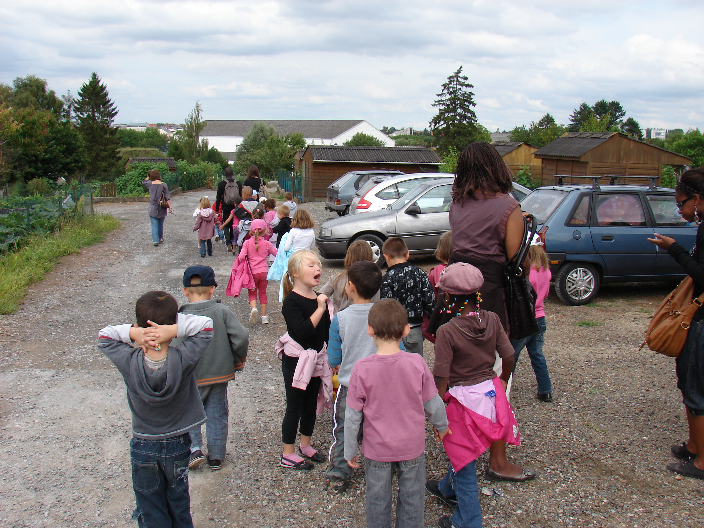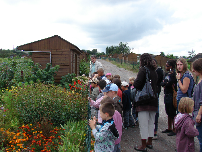Dans le cadre des activités de l' A.L.S.H 4-12 ans du Centre Social Municipal Neuville, visite guidée des jardins ouvriers,